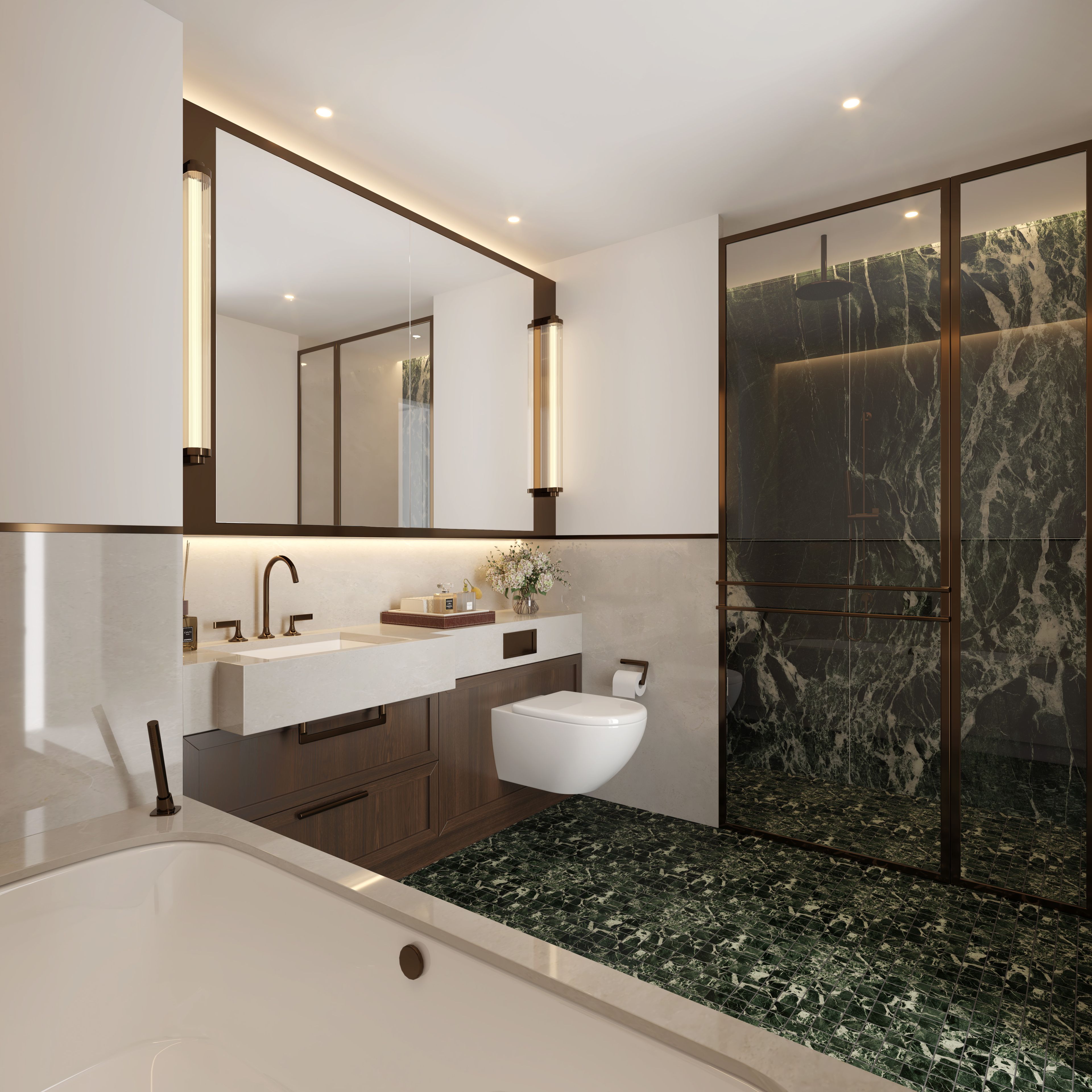 As part of Riverstone Bishops Avenue’s Arts and Crafts-inspired aesthetic, our two-bedroom apartments fuse refined eclecticism with contemporary finesse. Clean lines and neutral décor create a versatile canvas for your treasured belongings. Unwind in welcoming, sophisticated spaces curated with comfort and convenience in mind, each specified to the highest standard with state-of-the-art finishes.
