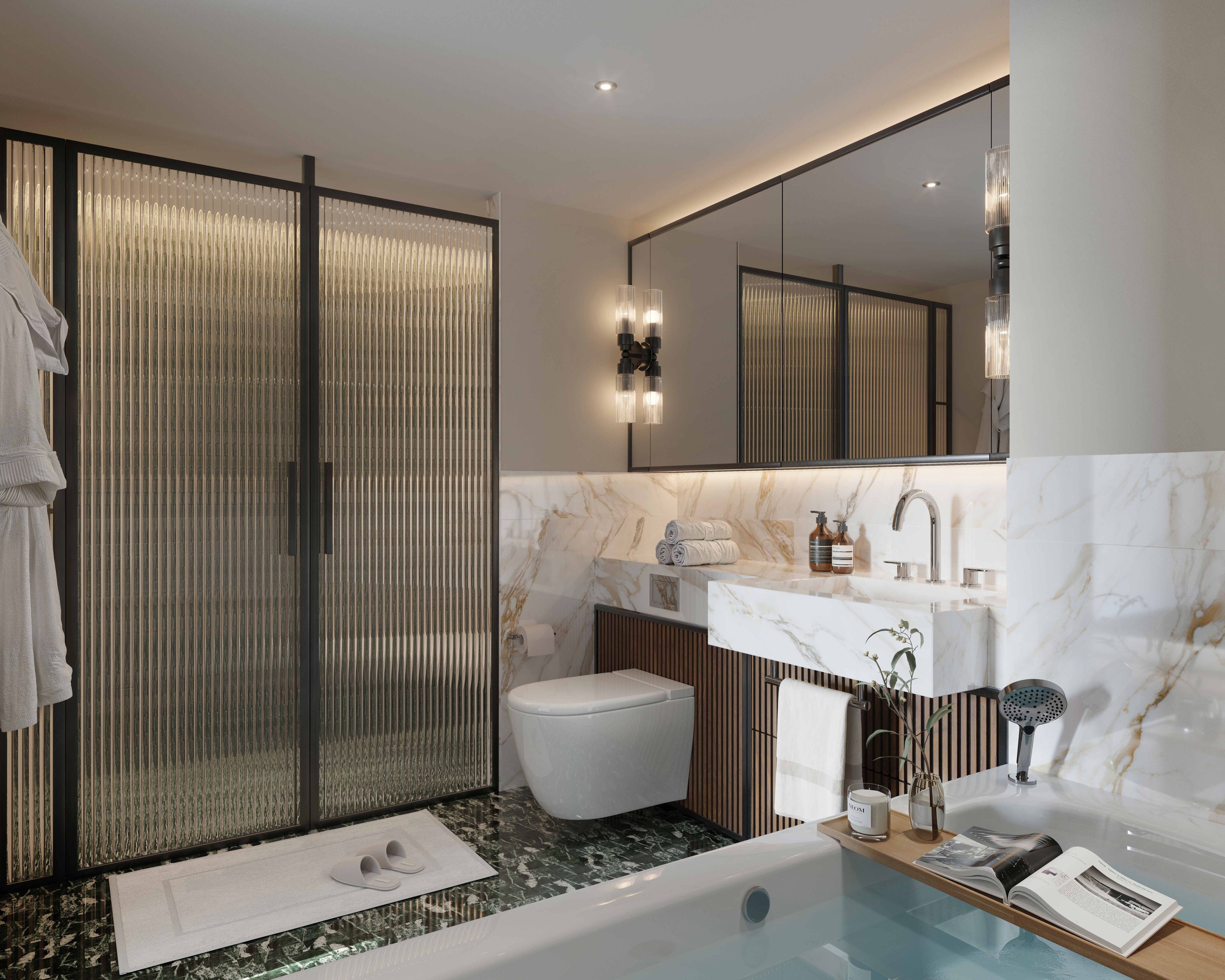 Make yourself at home in our two bedroom Riverstone King’s Road Park apartments. Generously sized and filled with light, these style-led apartments are finished to an exceptional standard. Each features a private outdoor space with views of the city or our landscaped garden. A Riverstone home also comes with access to our exceptional collection of amenities, including a restaurant and bar, club room, cinema, drinks library and golf studio – not to mention an on-site spa.