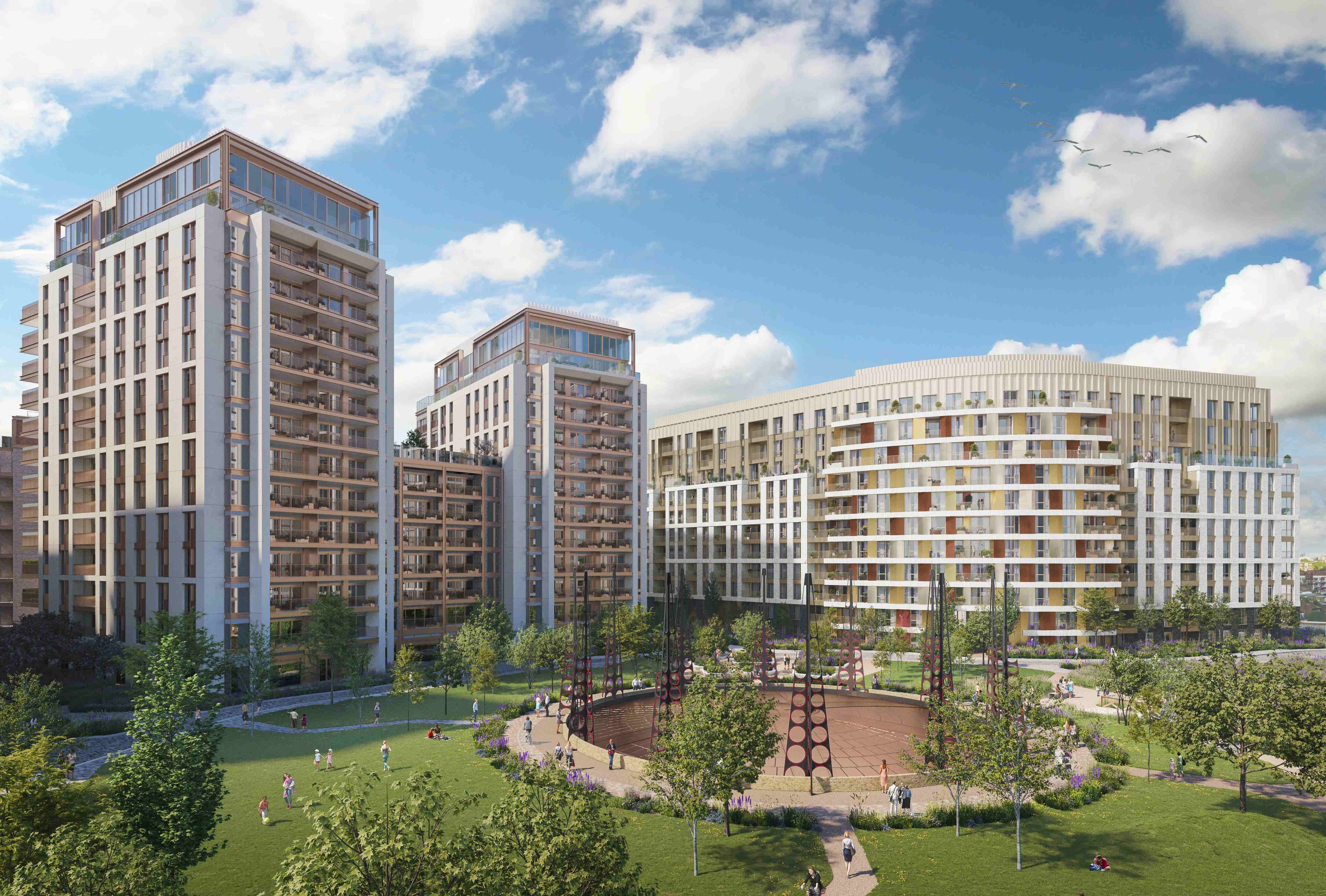 A significant milestone in the development of King’s Road Park, a new neighborhood in the South Fulham Riverside Regeneration Area, has been reached with the topping out two 15 and 13-storey buildings.